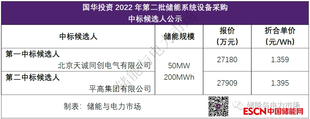 中國(guó)儲(chǔ)能網(wǎng)訊:日前國(guó)華投資發(fā)布2022年第二批儲(chǔ)能系統(tǒng)設(shè)備采購(gòu)中標(biāo)結(jié)果,北京天誠(chéng)同創(chuàng)電氣有限公司以1.36元/Wh成為第一中標(biāo)人。