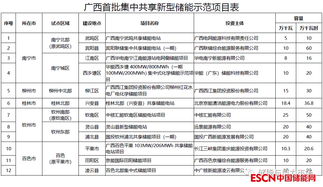 附:《廣西首批集中共享新型儲能示范項目表》