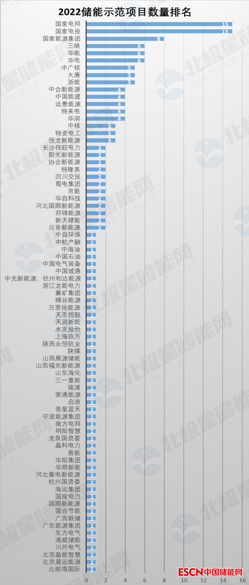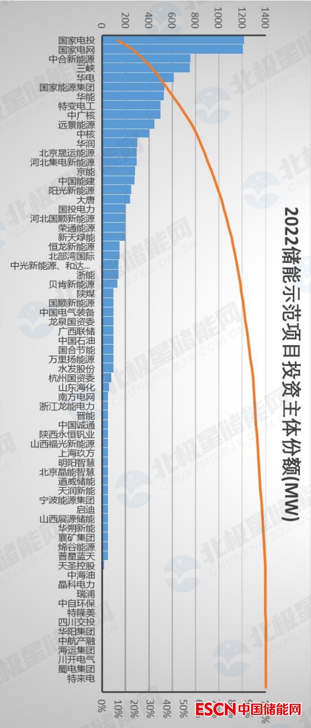 具體來看,國家電投和國家電網(wǎng)手上的儲能示范項(xiàng)目功率規(guī)模不相上下、均超過1.2GW,這兩大企業(yè)就占比超18%,隨后是其他發(fā)電集團(tuán)、擁有的儲能示范項(xiàng)目規(guī)模也都超過了500MW。