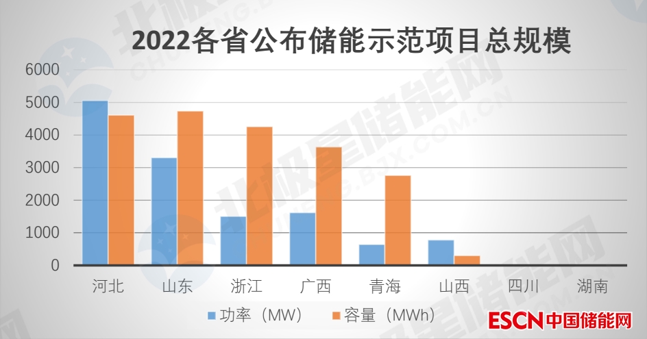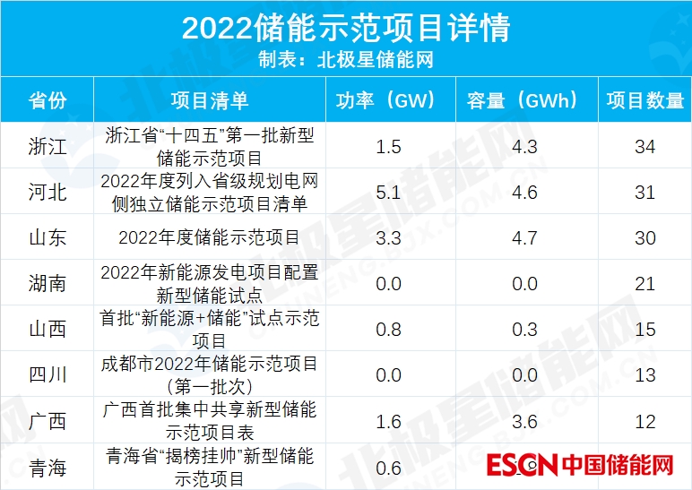 省級儲能示范項(xiàng)目最早出現(xiàn)在山東省,2021年山東首批儲能示范項(xiàng)目5例儲能調(diào)峰、2例儲能調(diào)頻,均起到了相當(dāng)明顯的示范作用,已有5個(gè)儲能項(xiàng)目陸續(xù)進(jìn)入了山東省電力現(xiàn)貨市場,為探索儲能盈利模式、附加儲能價(jià)值做了有效示范。