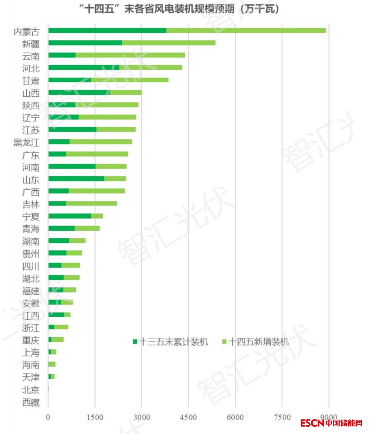 其中,內(nèi)蒙古十三五末為3786萬千瓦,全國第一;十四五期間,預(yù)期新增5114萬千瓦,累計達到8900萬千瓦,將仍然為全國風電第一裝機大??!