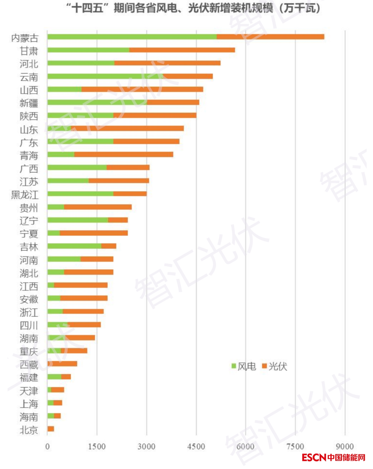 二、十四五期間,各省風電、光伏新增裝機規(guī)模預(yù)期8.5億千瓦