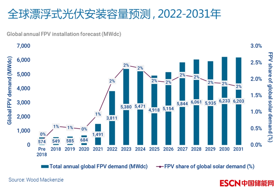 中國(guó)儲(chǔ)能網(wǎng)訊:隨著漂浮式光伏技術(shù)的發(fā)展,越來(lái)越多的利益相關(guān)方將擠進(jìn)漂浮式光伏市場(chǎng)角逐,漂浮式光伏市場(chǎng)的格局可能即將發(fā)生改變。2022年,全球漂浮式光伏市場(chǎng)的總規(guī)模預(yù)計(jì)接近4GWdc,同比增長(zhǎng)150%。