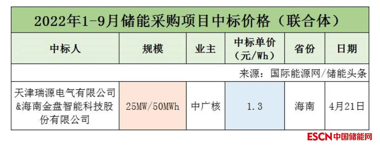 2022年前三季度中廣核共有3個儲能采購招標項目開標,項目總規(guī)模為1025MW/1950MWh。