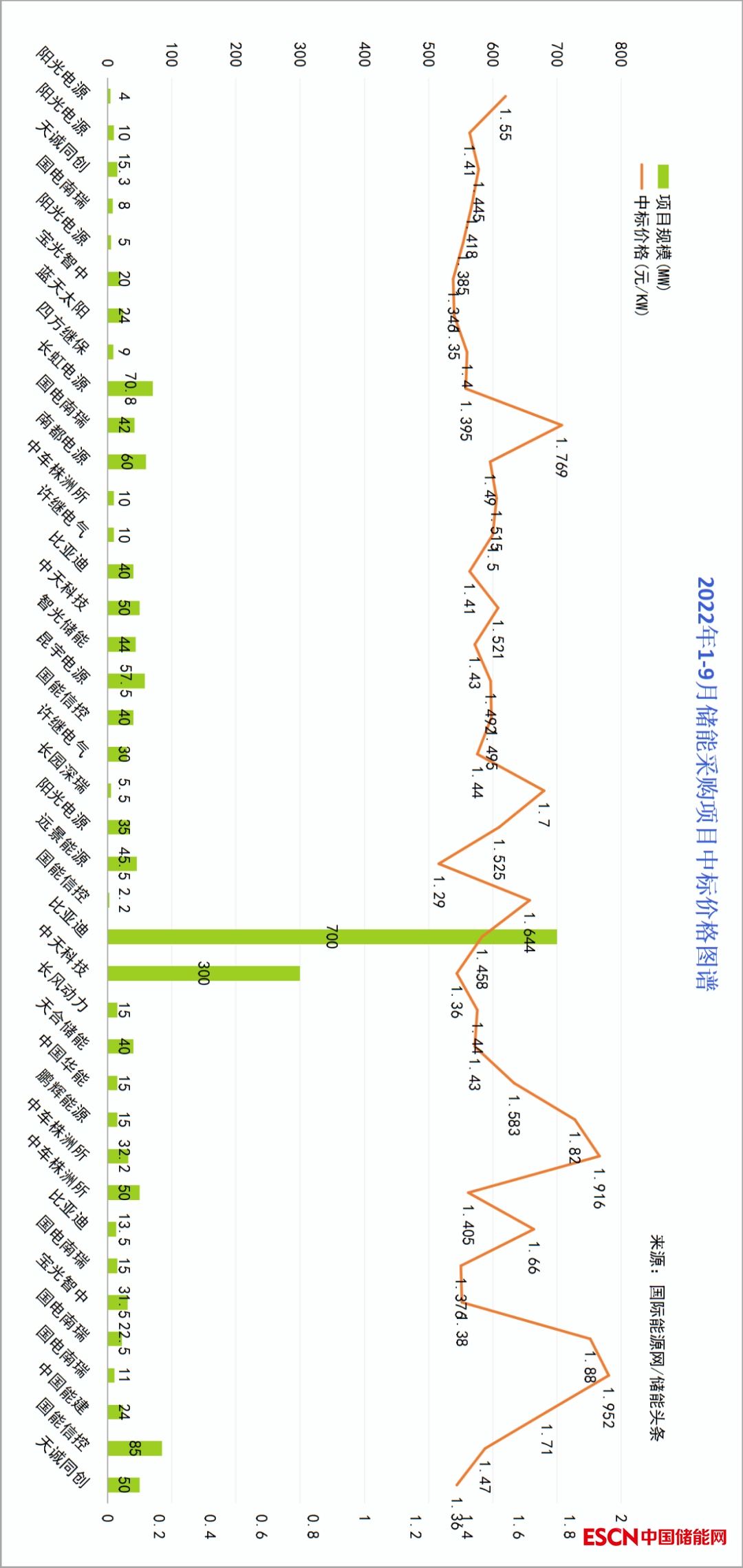 其中,前三季度比亞迪中標中廣核2022年度磷酸鐵鋰電池儲能系統(tǒng)框架采購-第一標段,成為單一中標規(guī)模最大的項目,投標價格為189477.1172萬元,投標單價1.458元/Wh;中天科技中標中廣核2022年度磷酸鐵鋰電池儲能系統(tǒng)框架采購-第二標段,蒙古國80MW/200MWh大型儲能項目設計、供貨、施工、調試和2年運維項目;本次中標的國內外大型儲能項目金額合計約13.58億元,占公司2021年度經(jīng)審計營業(yè)收入的2.94%。