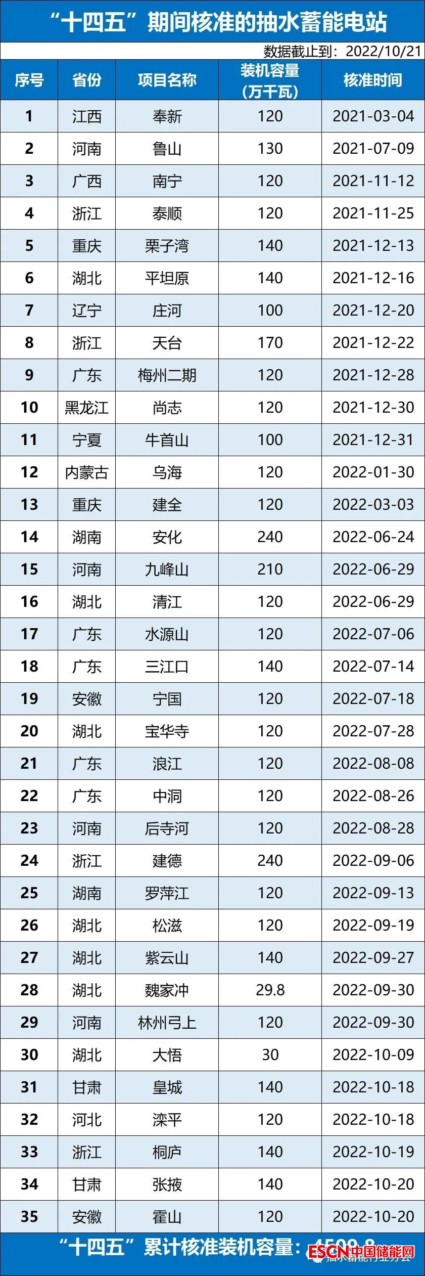 中國(guó)儲(chǔ)能網(wǎng)訊:截至 2022年 10月 21日,“十四五”期間已核準(zhǔn)抽水蓄能電站共計(jì) 35個(gè)項(xiàng)目,裝機(jī)規(guī)模合計(jì)為 4509.8萬千瓦,項(xiàng)目投資金額合計(jì)約為 3451億元。