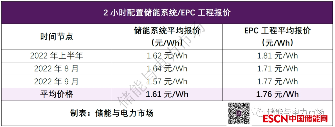 根據(jù)儲(chǔ)能與電力市場(chǎng)的價(jià)格數(shù)據(jù)庫(kù),2022年以來(lái),儲(chǔ)能項(xiàng)目投標(biāo)中,0.5C(2小時(shí))儲(chǔ)能系統(tǒng)的報(bào)價(jià)最低價(jià)為1.294元/Wh,最高報(bào)價(jià)為2.258元/Wh,大部分情況位于1.4-1.6元/Wh之間,占比約為70%。