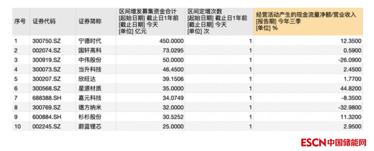 或許正是在業(yè)績的刺激下,鋰電企業(yè)加足馬力擴(kuò)張。一年前至今,共有16家企業(yè)增發(fā)募資,其中寧德時(shí)代以450億元的巨額募資位居榜首,國軒高科居第二。