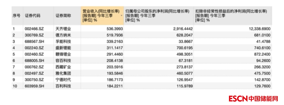 誰進(jìn)步最大:近九成公司營收增長天齊鋰業(yè)扣非凈利潤爆增123倍