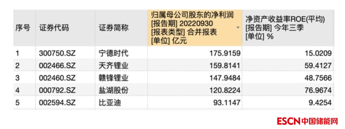 而從單家公司來看,寧德時(shí)代與比亞迪當(dāng)之無愧成為“明星公司”。鹽湖股份則憑借高達(dá)76.96%的凈資產(chǎn)收益率位列第一名,成為“最會賺錢的公司”。而“最佳進(jìn)步獎(jiǎng)”應(yīng)該頒發(fā)給天齊鋰業(yè)——公司前三季度實(shí)現(xiàn)了營業(yè)收入5倍、歸母凈利潤29倍、扣非凈利潤123倍的“逆天”同比漲幅。