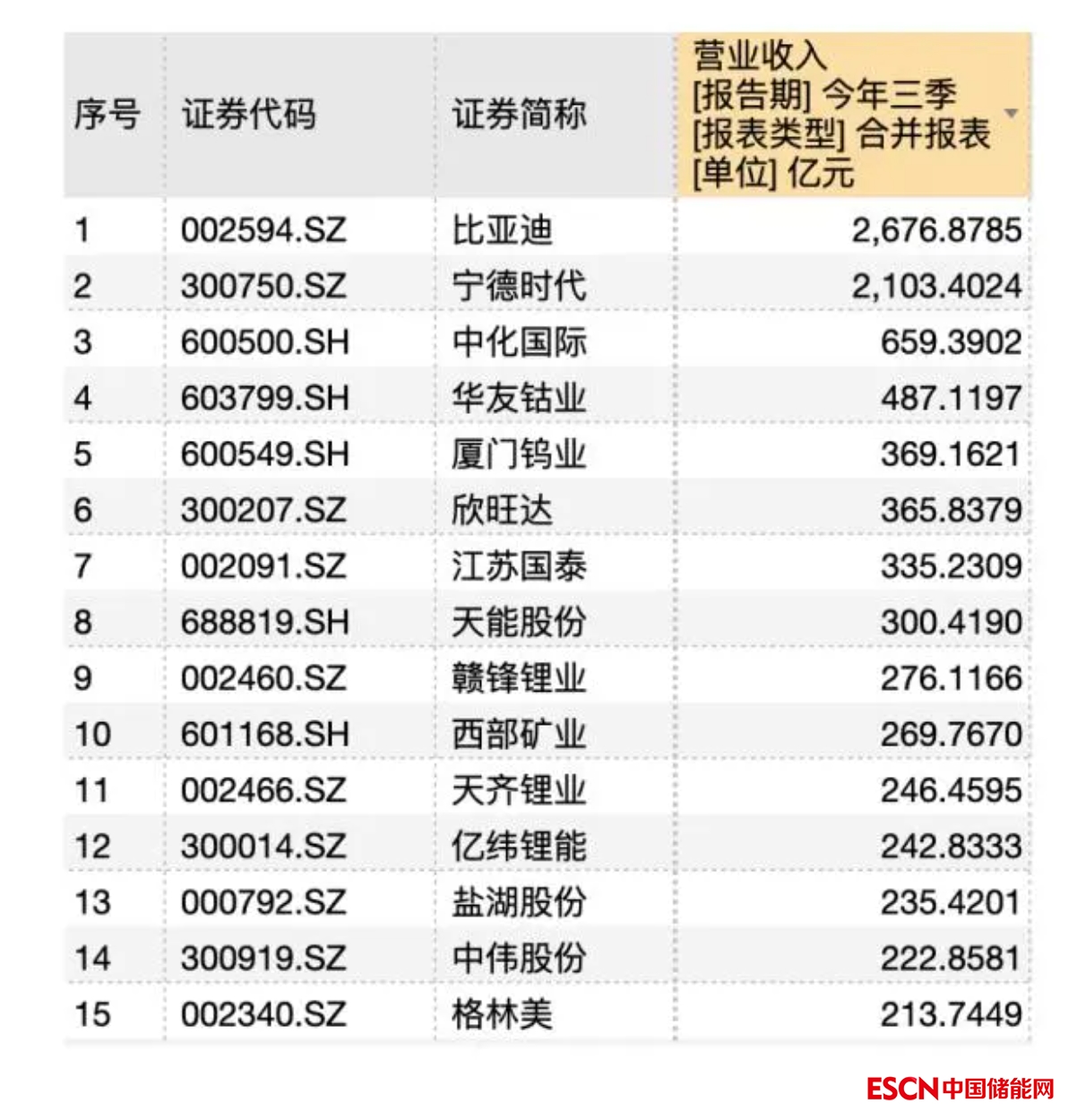 從營業(yè)收入來看,比亞迪、寧德時(shí)代堪稱“雙雄”,憑借前三季度2676.87億元和2103.40億元的營業(yè)收入占據(jù)著榜單前兩名,且體量遠(yuǎn)遠(yuǎn)和其他公司拉開差距。
