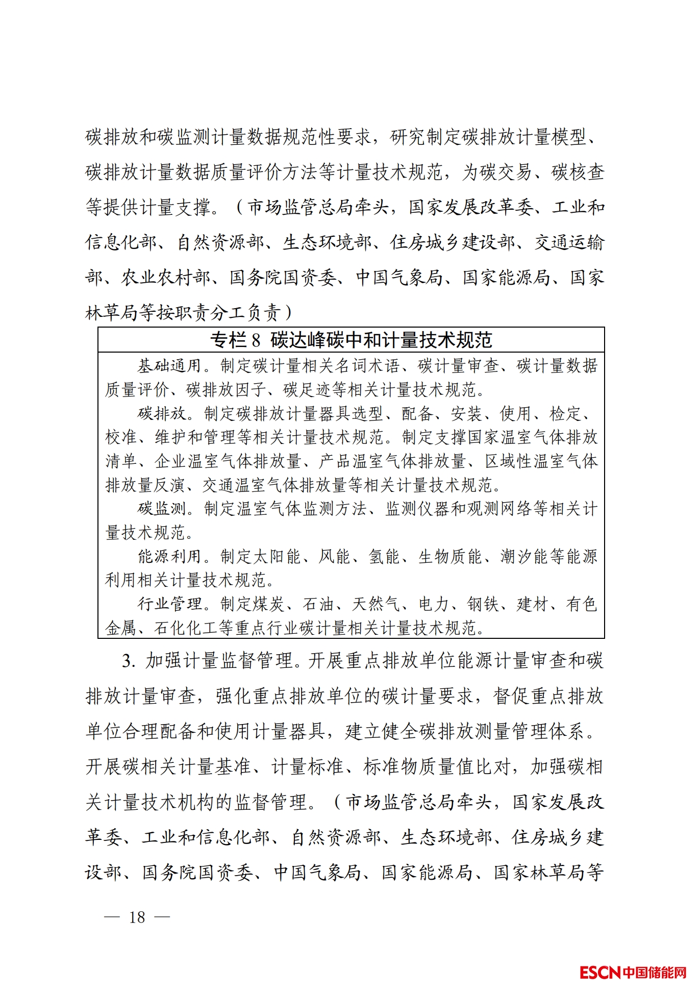 中國儲(chǔ)能網(wǎng)訊:為貫徹落實(shí)《中共中央 國務(wù)院關(guān)于完整準(zhǔn)確全面貫徹新發(fā)展理念做好碳達(dá)峰碳中和工作的意見》和《2030年前碳達(dá)峰行動(dòng)方案》有關(guān)部署,近日,市場(chǎng)監(jiān)管總局、國家發(fā)展改革委、工業(yè)和信息化部、自然資源部、生態(tài)環(huán)境部、住房城鄉(xiāng)建設(shè)部、交通運(yùn)輸部、中國氣象局、國家林草局等九部門聯(lián)合發(fā)布《建立健全碳達(dá)峰碳中和標(biāo)準(zhǔn)計(jì)量體系實(shí)施方案》(以下簡稱《實(shí)施方案》)。