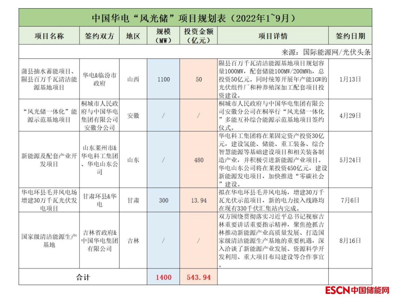 截至2022年9月30日,華電共簽約(規(guī)劃)5個(gè)風(fēng)光儲(chǔ)項(xiàng)目,其中已明確項(xiàng)目規(guī)模為1.4GW,有3個(gè)項(xiàng)目明確投資金額為543.94億元。