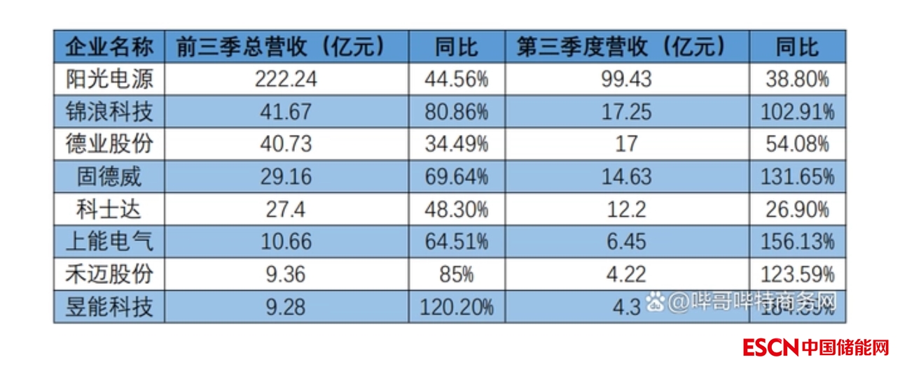部分逆變器企業(yè)三季度業(yè)績匯總,數(shù)據(jù)來源于企業(yè)公告,嗶哥嗶特資訊整理