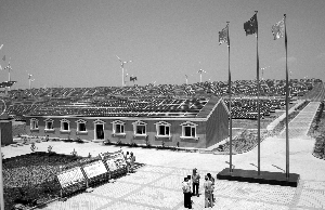 圖為已經(jīng)并網(wǎng)發(fā)電的寧夏太陽(yáng)山的一處風(fēng)力和光伏電站。