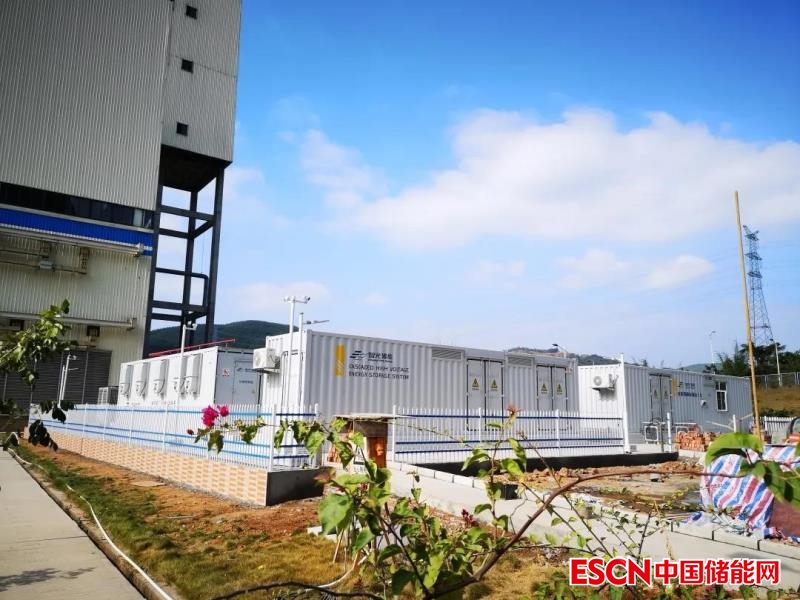 2、廣東茂名某熱電儲(chǔ)能調(diào)頻項(xiàng)目總裝機(jī)容量1150MW,2020年9月正式投運(yùn)。本項(xiàng)目?jī)?chǔ)能建設(shè)規(guī)模為20MW/10MWh,由4套5MW/2.5MWh級(jí)聯(lián)型高壓儲(chǔ)能系統(tǒng)并聯(lián)而成,電池選用磷酸鐵鋰電池。