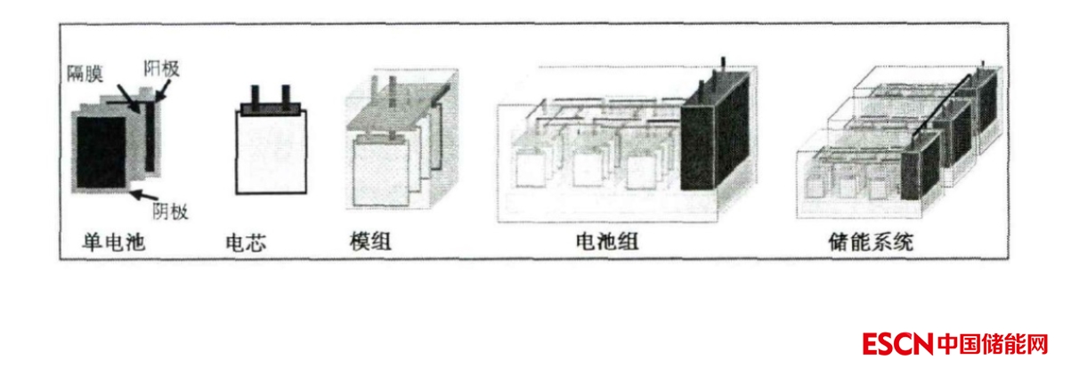 不同封裝等級的電池儲能系統(tǒng)示意圖
