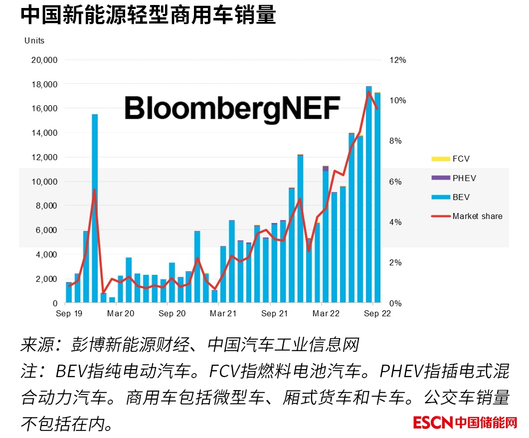 隨著市場(chǎng)繼續(xù)增長(zhǎng),2022年第三季度中國(guó)新能源廂式貨車銷量同比增長(zhǎng)168%。需求仍然強(qiáng)勁,第四季度或?qū)⑦M(jìn)一步增長(zhǎng),數(shù)家車企正在展開競(jìng)爭(zhēng)。相比之下,中型和重型新能源商用車(MHCV)市場(chǎng)更集中。第三季度中型和重型新能源商用車銷量同比增長(zhǎng)三分之二至4,400輛。