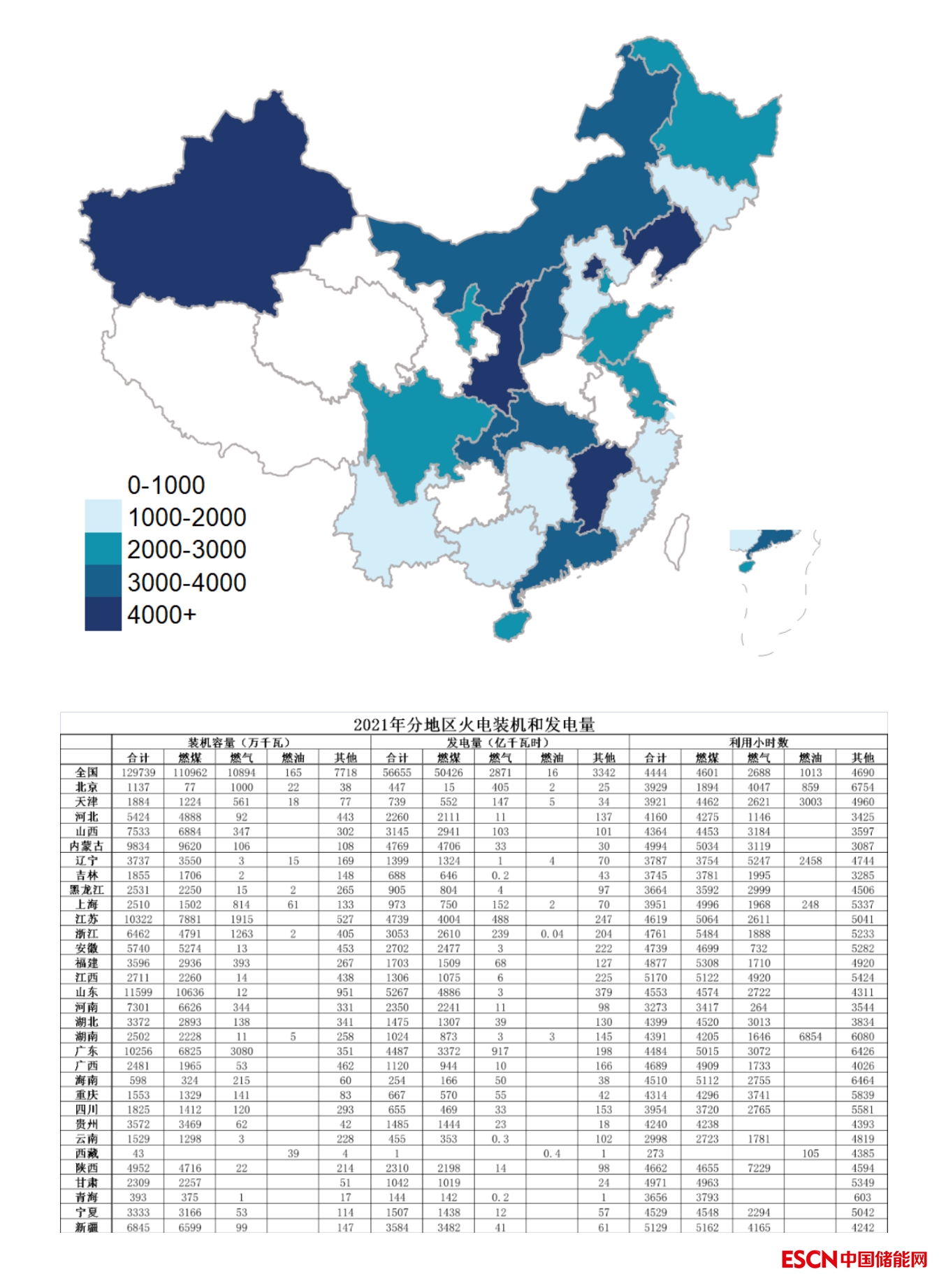 2021年分省燃煤機(jī)組利用小時(shí)數(shù)