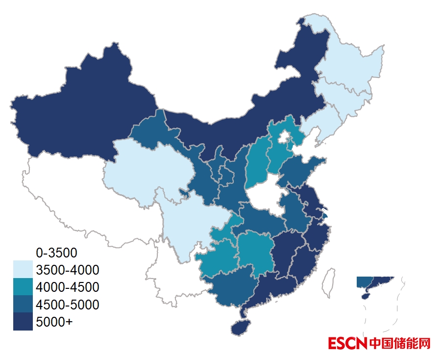 分省來(lái)看,東南和西北地區(qū)的燃煤機(jī)組利用小時(shí)數(shù)較高,燃?xì)鈾C(jī)組利用小時(shí)數(shù)省際差異巨大。(見(jiàn)下圖)