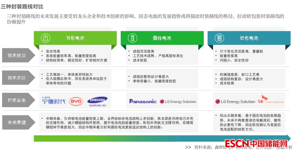 電動(dòng)汽車(chē)所用電池按外形和封裝形式分為方形、圓柱、軟包三種,方形和圓柱電池均使用金屬硬外殼,軟包電池使用鋁塑復(fù)合膜。