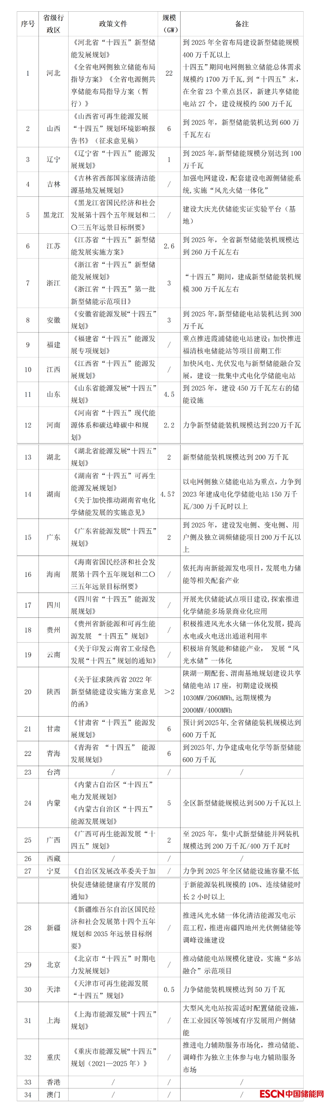 中國儲能網(wǎng)訊:“十四五”是儲能由商業(yè)化初期向規(guī)?;l(fā)展轉(zhuǎn)變的關(guān)鍵階段,截至2022年11月,有17個省市明確公布了“十四五”儲能目標,到2025年新型儲能裝機共計超50GW。具體如下表所示: