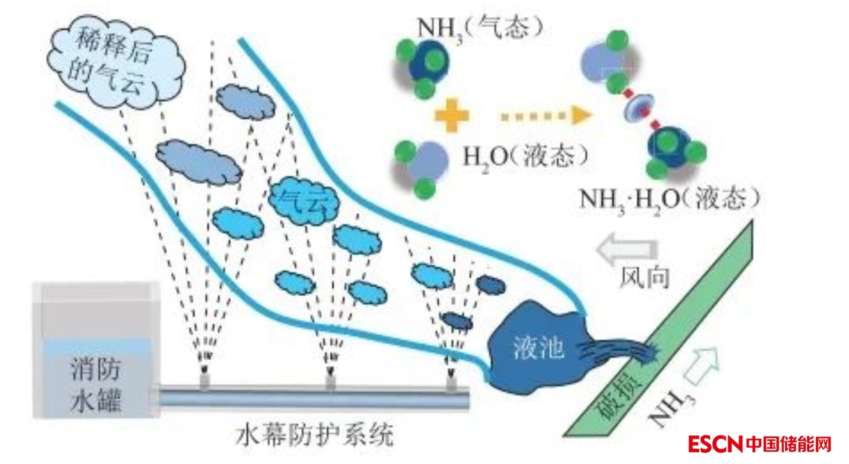 圖4 液氨管道泄漏擴(kuò)散與水幕防護(hù)示意圖