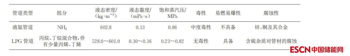 通過對(duì)比常溫常壓(25 ℃、101.325 kPa)條件下液氨與 LPG 物性參數(shù)(表 4)發(fā)現(xiàn),兩者密度、黏度、飽和蒸汽壓等基礎(chǔ)物性參數(shù)基本相近,因此,液氨管道在設(shè)計(jì)參數(shù)及輸送工藝等方面與 LPG 管道類似[41]。然而,首先,由于液氨為中度毒性物質(zhì),其管道泄漏檢測(cè)處置及回收處理方式與 LPG 管道存在不同,同時(shí),為了減少泄漏,化工液氨管道常選用的屏蔽泵在 LPG 長(zhǎng)輸管道上也未有應(yīng)用,其對(duì)長(zhǎng)輸管道的適應(yīng)性有待進(jìn)一步研究;其次,液氨與 LPG 在易燃易爆性能及腐蝕性能方面的差異性,造成兩者管道、設(shè)備、密封件等材質(zhì)要求不同,罐區(qū)、站場(chǎng)火災(zāi)危險(xiǎn)等級(jí)及防火間距要求也有所不同。根據(jù)美國(guó)運(yùn)輸部管道輸送危險(xiǎn)性物質(zhì)管理?xiàng)l例要求,美國(guó)液氨管道設(shè)計(jì)比 LPG 管道設(shè)計(jì)要求更加嚴(yán)格。因此,液氨管道可以借鑒 LPG 管道設(shè)計(jì)、建設(shè)及運(yùn)營(yíng)經(jīng)驗(yàn),但仍需針對(duì)液氨與 LPG 物性差異開展系統(tǒng)性驗(yàn)證。