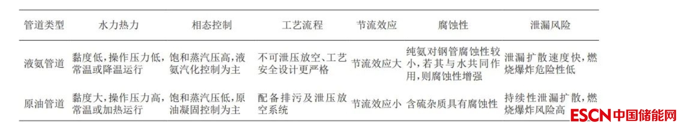 表3 液氨管道與原油管道差異性對(duì)比表