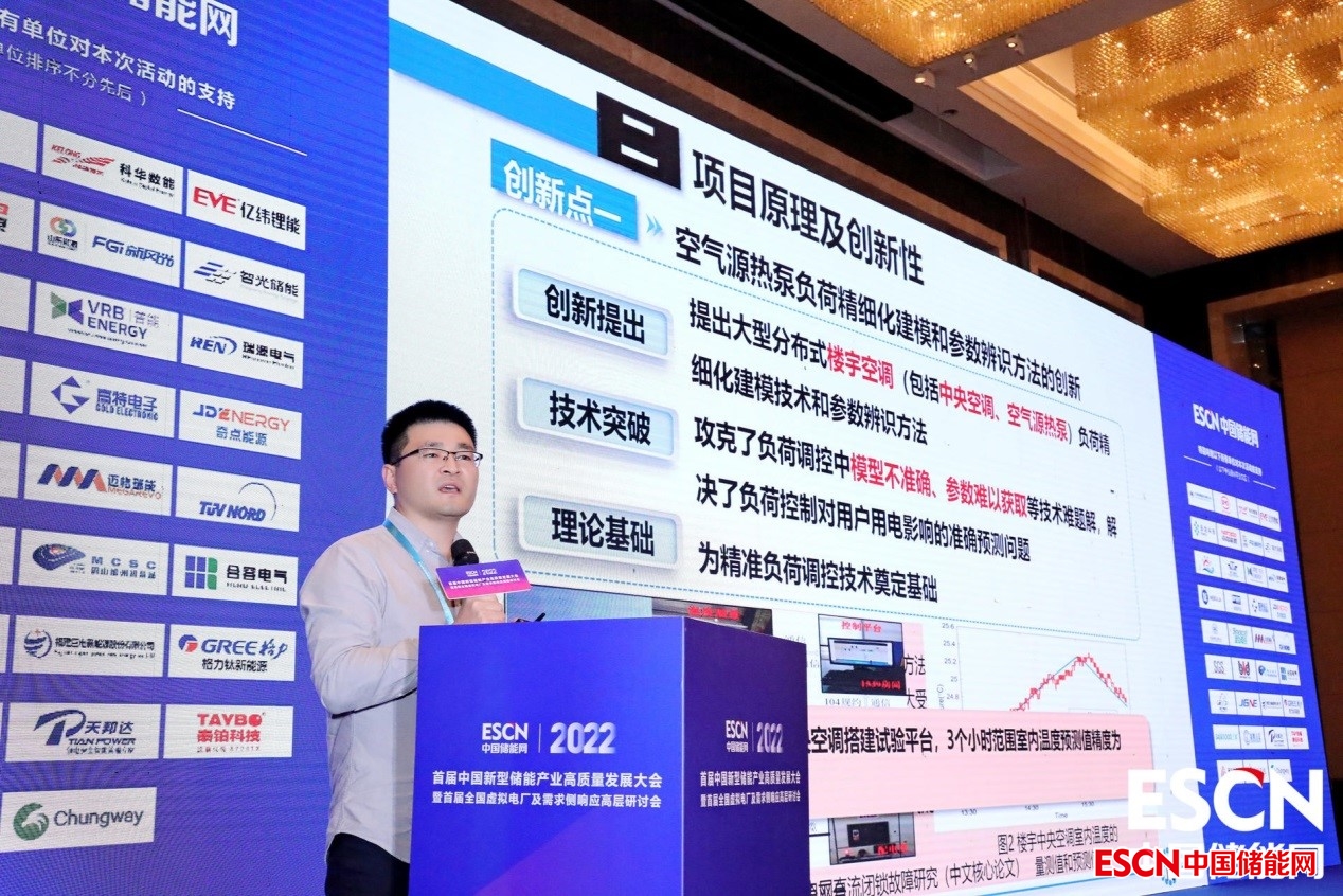傳統(tǒng)電網(wǎng)的平衡模式主要是“源隨荷動”,隨著火電占比的大幅下降,新能源發(fā)電不確定性強,勢必向“源荷互動”模式轉(zhuǎn)變,負荷參與電網(wǎng)調(diào)控是必然的趨勢??諝庠礋岜靡詷O少的電能吸收空氣中大量低位熱能,輸送到樓宇房間,達到供暖或者供冷的目的,必須非常廣應用的空間。我們這個建筑樓宇,包括空間熱泵整體輸送的水循環(huán)系統(tǒng),具有一定的特性,可在削峰填谷中發(fā)揮重大的作用。如果利用空間熱泵,參與電網(wǎng)的輔助服務市場,可以獲得調(diào)峰的收益,盈利模式相對比較穩(wěn)定。空前熱泵符合參與電網(wǎng)的調(diào)動,也面臨著很多的技術(shù)難題。第一個挑戰(zhàn)空前熱泵負荷模型,負荷優(yōu)化調(diào)動的基礎(chǔ),是參與需求側(cè)的基礎(chǔ)。為對樓宇空調(diào)進行精細化空調(diào)進行精細化建模或模型的參數(shù)無法獲取,進行優(yōu)化控制或者進行參與電網(wǎng)的調(diào)控。供冷也好,大多為實現(xiàn)優(yōu)化運營,沒有在用戶“無感知”情況下,充分利用樓宇蓄冷蓄熱能力實現(xiàn)優(yōu)化控制,不影響用戶舒適度。優(yōu)化節(jié)能,結(jié)合電力現(xiàn)貨市場指令峰谷電價、樓宇冷/熱供應能耗特性等因素。尤其對于空氣源熱泵來講,現(xiàn)在在山東大部分好多住樓房的情況,熱力公司的供暖到不了那個地方,很多選空氣源熱泵供暖。供暖運營商對于他們公司來講,他收到的就是采暖費,他們的付出就是電費。如果我這個優(yōu)化節(jié)能做的不足夠的話有可能就是虧損的。全省山東收集了500多家的小區(qū),大多處于虧損狀態(tài),甚至好多無法運營下去了,就要開始否定這種供暖方式,可能要采用其他的,或者是想要做相應的改變,他們認為是空氣源熱泵不節(jié)能,實際上他們是對于空氣源熱泵這個控制是欠缺了解。因為大多數(shù)空調(diào)廠家,賣空氣源熱泵只關(guān)注單臺的效果。對于一個小區(qū)來講,我可能一臺熱泵是帶不起來這些供暖,我可能需要十臺、二十臺甚至三十臺,這樣整體的空氣源熱泵對這個小區(qū)整體進行一個供暖。整體這個控制策略如果它沒有相應的空調(diào)廠家也是不了解的,只對單個熱泵控制是比較了解的。對于整體性能,就整體的控制,可能無法做到相應的優(yōu)化控制。我們現(xiàn)在目前接受的最大的一個負荷,是臨沂的一個新區(qū),是17萬平小區(qū),總共有89臺熱泵,每臺熱泵差不多30多千瓦,整個負荷是3000瓦左右,和分布式光伏整體體量是差不多大的。它的整體一開始是處于虧損的狀態(tài)。