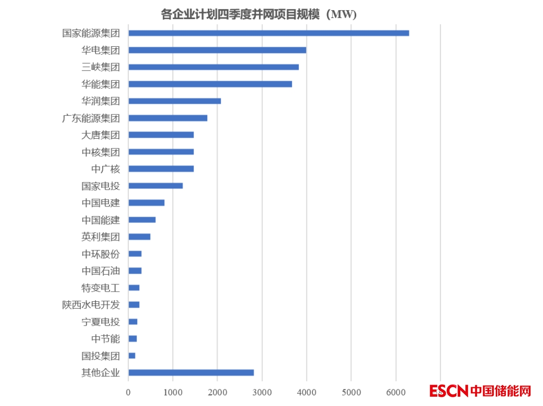 以國家能源集團的規(guī)模最大,超過6GW,華電、三峽、華能等集團,規(guī)劃在四季度并網(wǎng)規(guī)模也超過3GW,具體如下圖所示。