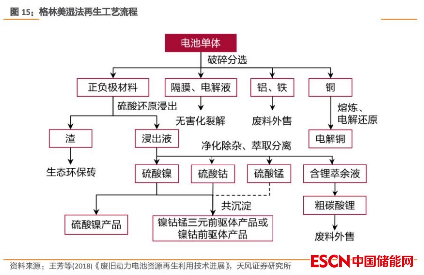 目前格林美、寧德時(shí)代控股子公司邦普循環(huán)等國內(nèi)領(lǐng)先的回收企業(yè),以及 AEA、IME 等國際龍頭企業(yè), 大多采用濕法技術(shù)路線作為鋰、鈷、鎳等有價(jià)金屬資源回收的主要技術(shù)。