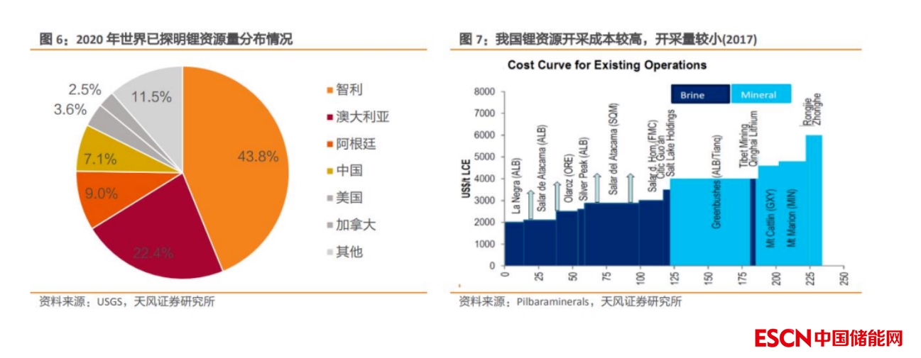 鋰資源國內(nèi)供應(yīng)能力弱,對外依存度高。2020 年全球已探明鋰資源量 2100 萬噸,其中我國已探明鋰資源量達(dá) 150 萬噸,占全球總儲(chǔ)備量的 7.1%,潛在供給相對充足;但受限于鋰資源的品質(zhì)(鎂鋰比較高)以及開采條件(地理氣候條件差)等因素,我國鋰資源實(shí)際供應(yīng)能力較弱,對外依存度高。
