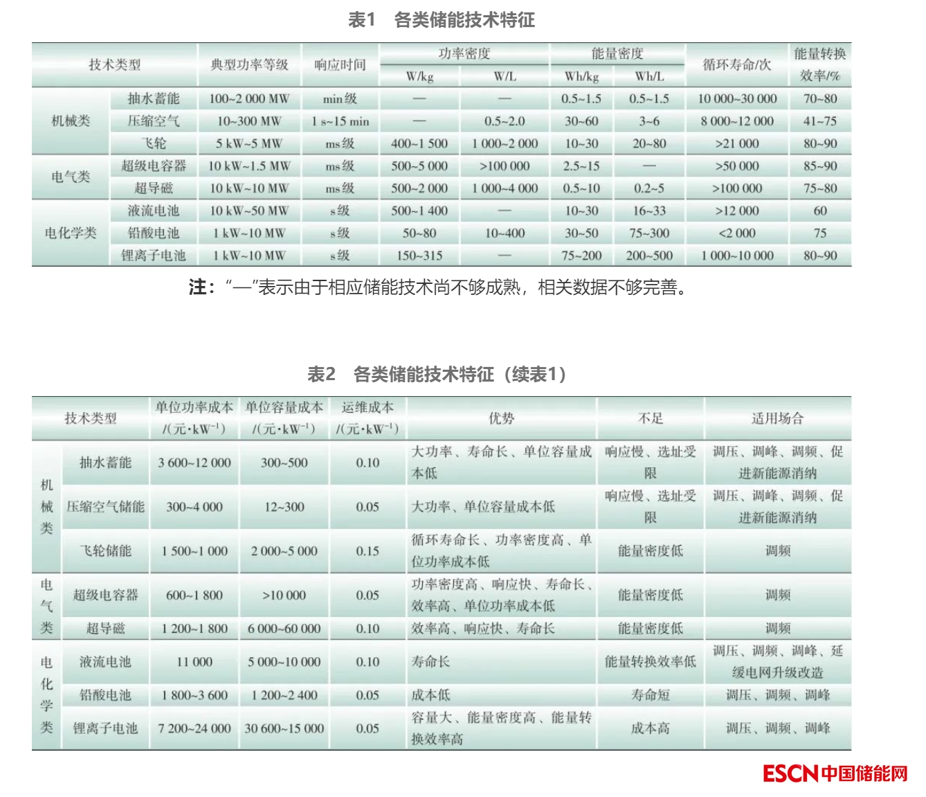 1 儲(chǔ)能類(lèi)型及技術(shù)特性分析