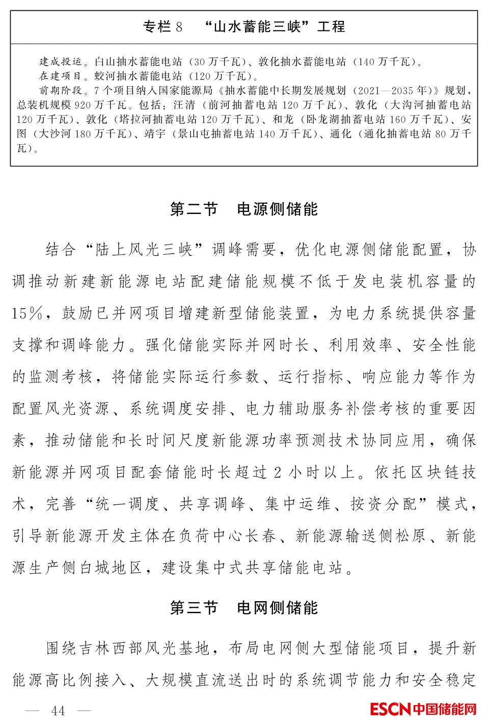 通知要求,結(jié)合 “陸上風(fēng)光三峽”調(diào)峰需要,優(yōu)化電源側(cè)儲能配置,協(xié)調(diào)推動新建新能源電站配建儲能規(guī)模不低于發(fā)電裝機容量的15%,鼓勵已并網(wǎng)項目增建新型儲能裝置,為電力系統(tǒng)提供容量支撐和調(diào)峰能力。強化儲能實際并網(wǎng)時長、利用效率、安全性能的監(jiān)測考核,將儲能實際運行參數(shù)、運行指標(biāo)、響應(yīng)能力等作為配置風(fēng)光資源、系統(tǒng)調(diào)度安排、電力輔助服務(wù)補償考核的重要因素,推動儲能和長時間尺度新能源功率預(yù)測技術(shù)協(xié)同應(yīng)用,確保新能源并網(wǎng)項目配套儲能時長超過2小時以上。