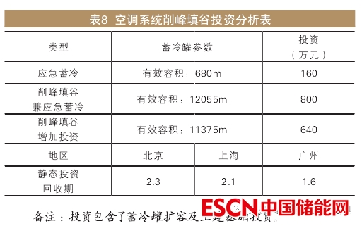 結(jié)合表3中蓄冷罐的參數(shù)及表7運(yùn)行費(fèi)用,可以計(jì)算不同地區(qū)空調(diào)系統(tǒng)采用削峰填谷后的靜態(tài)投資回收期,具體的計(jì)算值如表8所示。