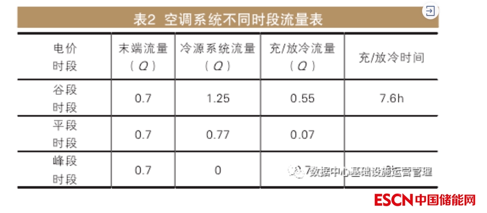 在數(shù)據(jù)中心實(shí)際運(yùn)行過(guò)程中,具體運(yùn)行策略如表2所示。一般數(shù)據(jù)中心的平均負(fù)載率均低于設(shè)計(jì)滿(mǎn)負(fù)載的70%。本文計(jì)算過(guò)程中,進(jìn)行如下假定:空調(diào)系統(tǒng)設(shè)計(jì)滿(mǎn)負(fù)載流量為Q,系統(tǒng)平均負(fù)載率為設(shè)計(jì)滿(mǎn)負(fù)載的70%。制冷單元為4+1配置,制冷單元的最大運(yùn)行流量為1.25Q。平段時(shí)間,蓄冷罐為定壓旁通設(shè)備,旁通流量為系統(tǒng)運(yùn)行所需流量的10%。