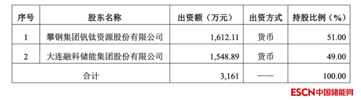 (四川釩融儲(chǔ)能科技有限公司持股比例,來源:公告)