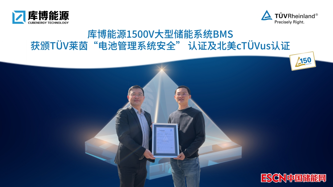 庫博能源大型儲能系統(tǒng)BMS獲頒TüV萊茵“電池管理系統(tǒng)安全”認(rèn)證