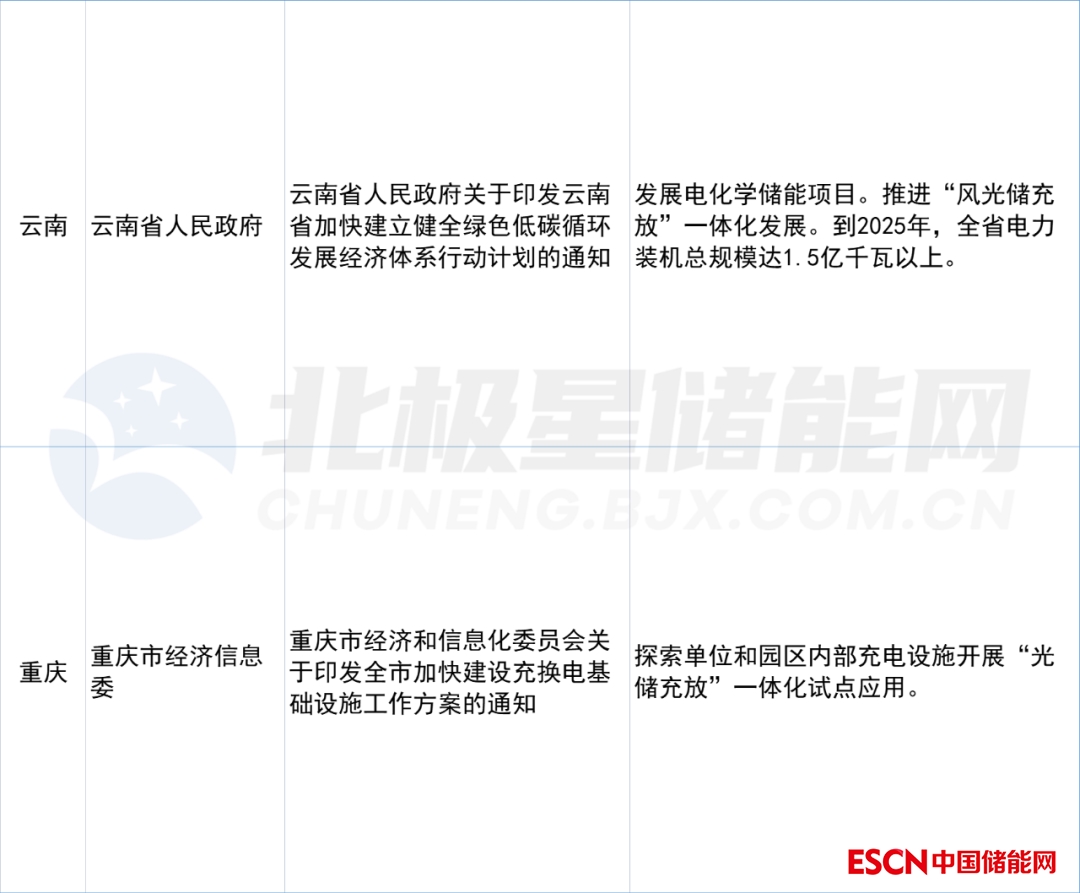 全國多地光儲充政策匯總 附表: