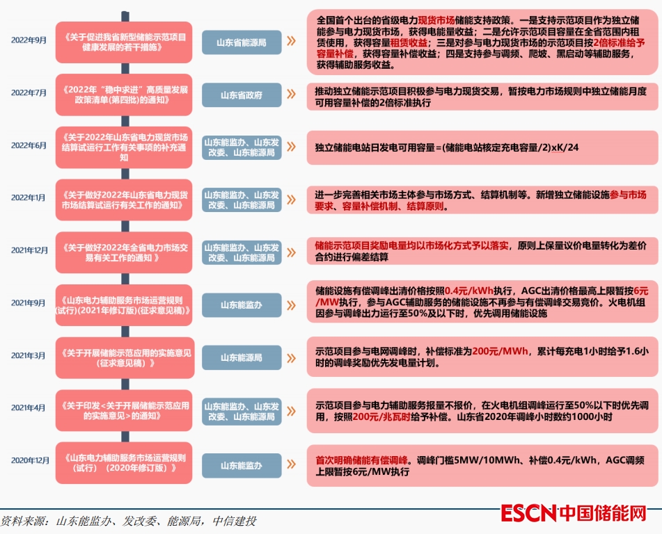 圖:山東獨(dú)立儲(chǔ)能支持政策變遷