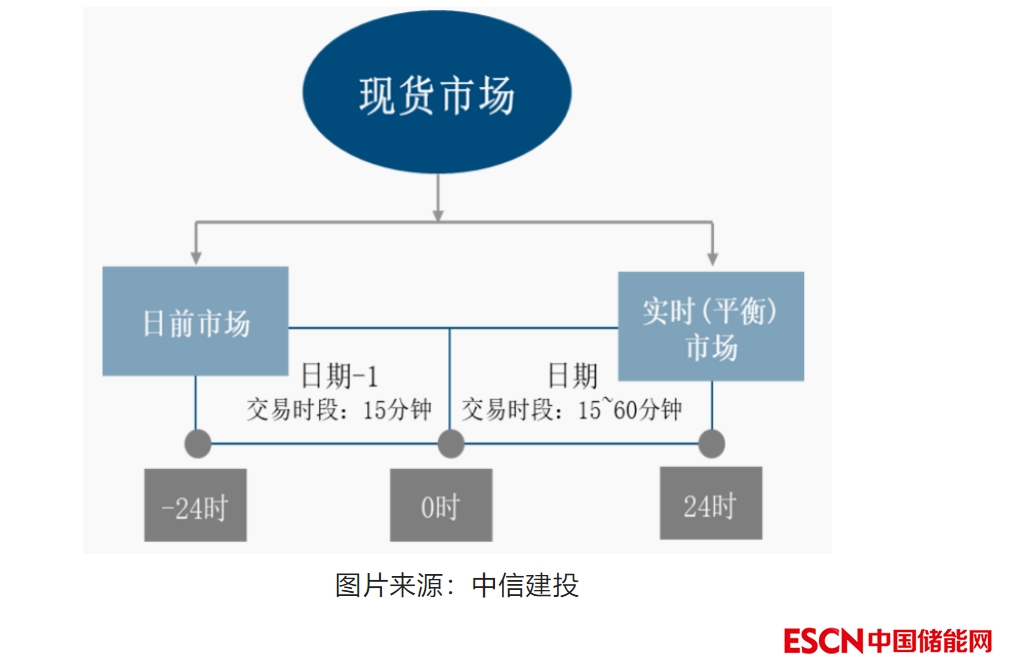 圖:現(xiàn)貨市場(chǎng)分日前、實(shí)時(shí)(平衡)兩個(gè)市場(chǎng)