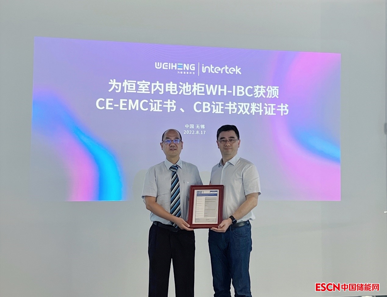 4)江蘇為恒智能科技有限公司室內(nèi)液冷電池柜WH-IBC系列高壓Pack順利通過Intertek天祥集團基于IEC62619的全套測試,獲頒高壓電池CE-EMC證書、CB證書雙料證書,產(chǎn)品可以銷售歐洲與其他地區(qū)。