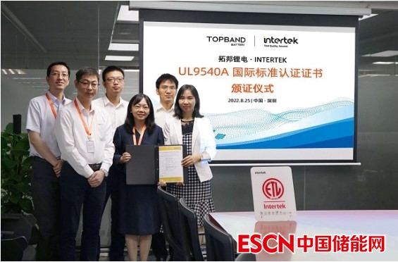 3)深圳市拓邦鋰電池有限公司研發(fā)的鋰電儲能系統(tǒng)通過Intertek天祥集團認證測試,獲頒UL 9540A 及UL 1973 ETL認證證書。產(chǎn)品符合北美市場認證相關(guān)要求。