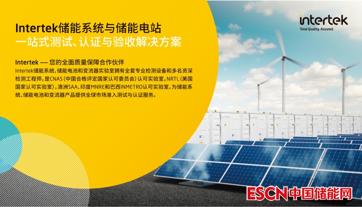 Intertek憑借遍布全球的技術(shù)網(wǎng)絡(luò)以及本地化的儲能系統(tǒng)實驗室,為國內(nèi)外儲能產(chǎn)品生產(chǎn)企業(yè)提供全球一站式的專業(yè)服務(wù),服務(wù)內(nèi)容涵蓋北美 cETLus認證及現(xiàn)場貼標和CEC列名、歐洲COC/CE認證、澳大利亞SAA認證和CEC列名、巴西INMETRO測試與注冊、印度MNRE/BIS認證、中國CQC/CGC認證等各個國家和地區(qū)的市場準入服務(wù)。同時,亦可為 儲能電站提供設(shè)計評估/系統(tǒng)測試、儲能電站監(jiān)造及監(jiān)理服務(wù)、儲能電站出廠驗收及竣工驗收、儲能電站并網(wǎng)驗收和電纜檢測驗收等服務(wù)。