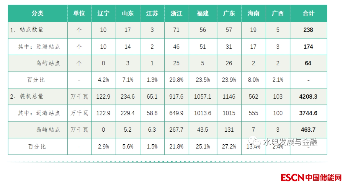 2、根據(jù)站點(diǎn)地形地貌、成庫(kù)條件、距高比、水頭、區(qū)域地質(zhì)和環(huán)境影響等方面的要求,本次共普查出海水抽水蓄能資源站點(diǎn)238個(gè)(其中近海站點(diǎn)174個(gè),島嶼站點(diǎn)64個(gè)),總裝機(jī)容量為4208.3萬(wàn)千瓦(其中近海為3744.6萬(wàn)千瓦,島嶼為463.7萬(wàn)千瓦)。