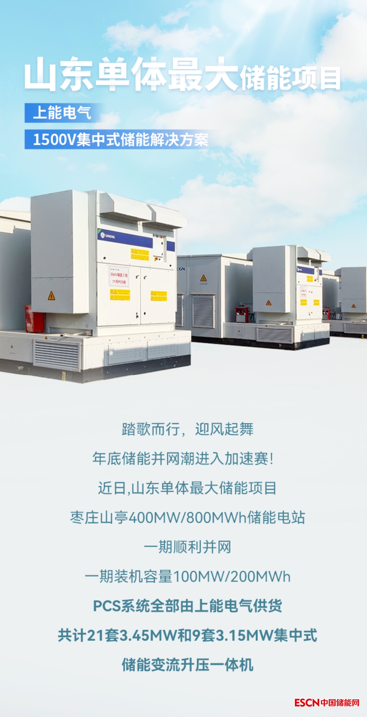 山東單體最大儲(chǔ)能項(xiàng)目并網(wǎng)!上能電氣儲(chǔ)曜齊魯大地