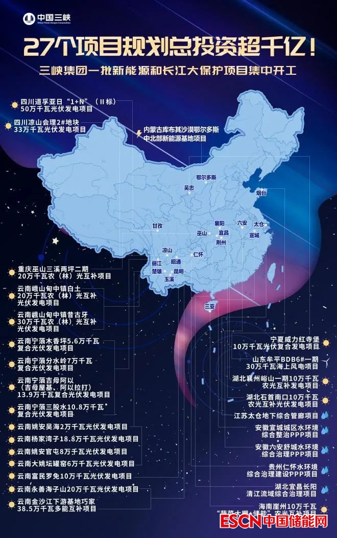 中國(guó)儲(chǔ)能網(wǎng)訊:12月28日,三峽集團(tuán)舉行2022年重大項(xiàng)目集中開(kāi)工儀式,宣布規(guī)劃總投資超千億元的27個(gè)新能源和長(zhǎng)江大保護(hù)項(xiàng)目集中開(kāi)工。三峽集團(tuán)董事長(zhǎng)、黨組書(shū)記雷鳴山宣布項(xiàng)目集中開(kāi)工,總經(jīng)理、黨組副書(shū)記韓君出席并講話,副總經(jīng)理、黨組成員呂庭彥主持。