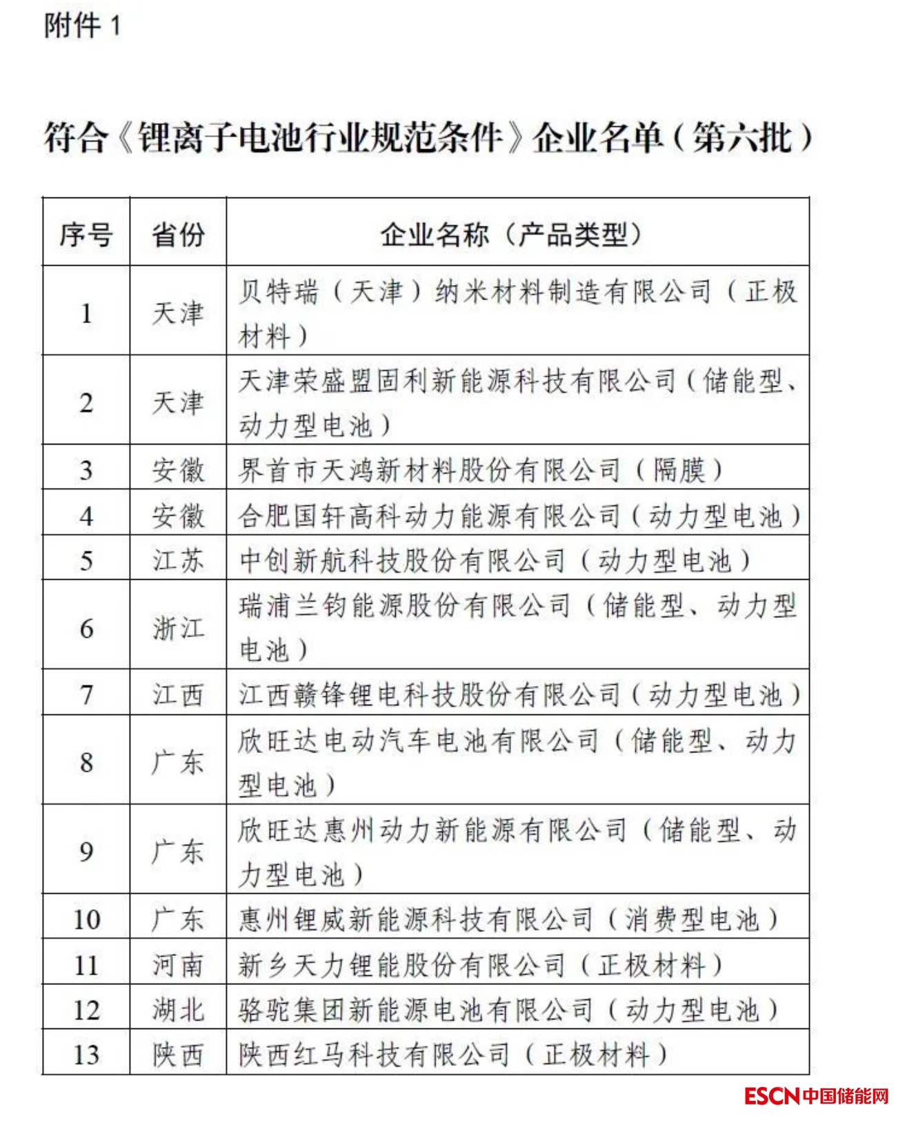 1.符合《鋰離子電池行業(yè)規(guī)范條件》企業(yè)名單(第六批)