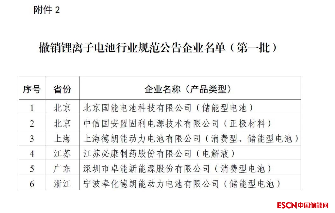 2.撤銷鋰離子電池行業(yè)規(guī)范公告企業(yè)名單(第一批)